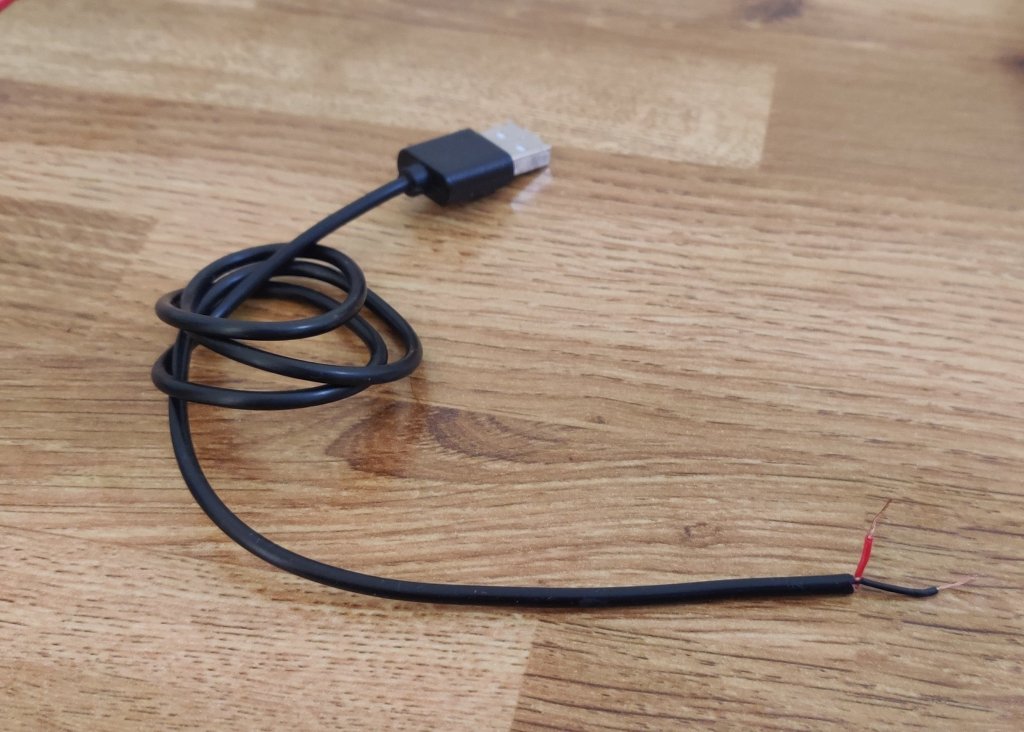 A normal battery does not last long so, you would need to connect the Arduino to a power outlet of your house. You can do this by finding a unused phone charger and cuts it’s wire. Take the side with the USB port as shown below and remove the rubber cover on the red and black wire. This will be our power source. Now connect the red wire to the VIN pin on the Arduino and the block